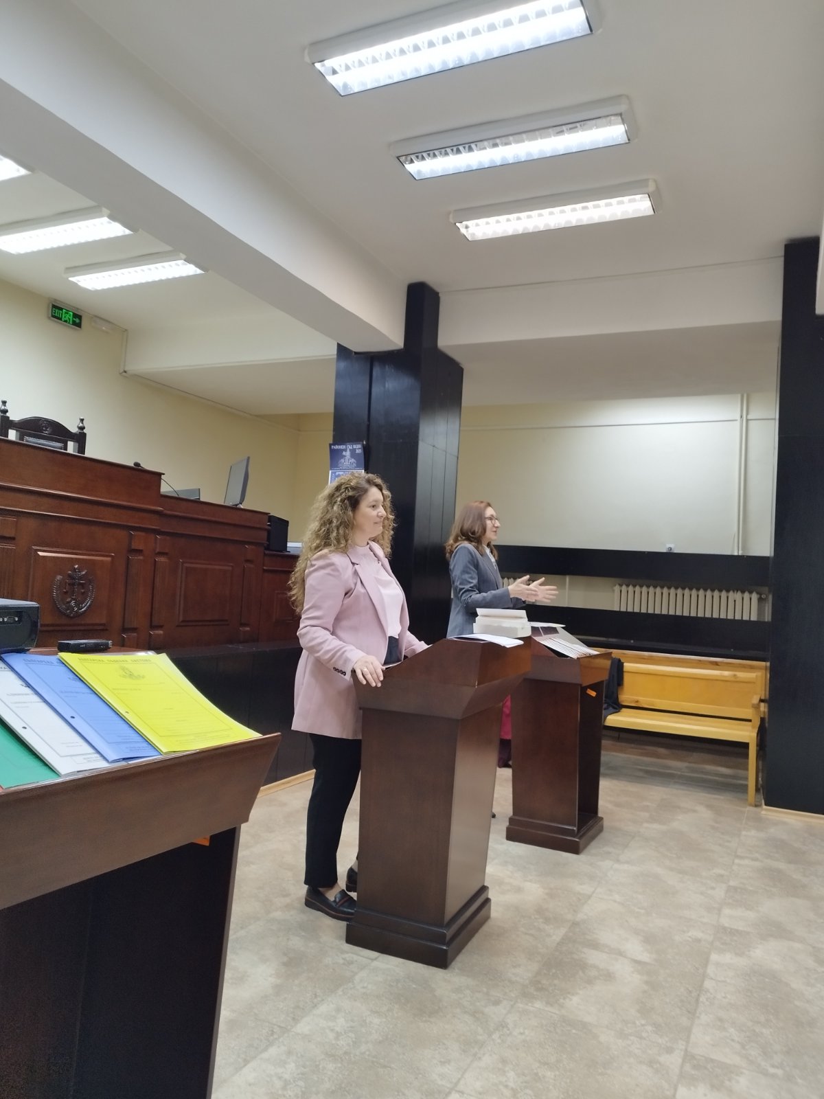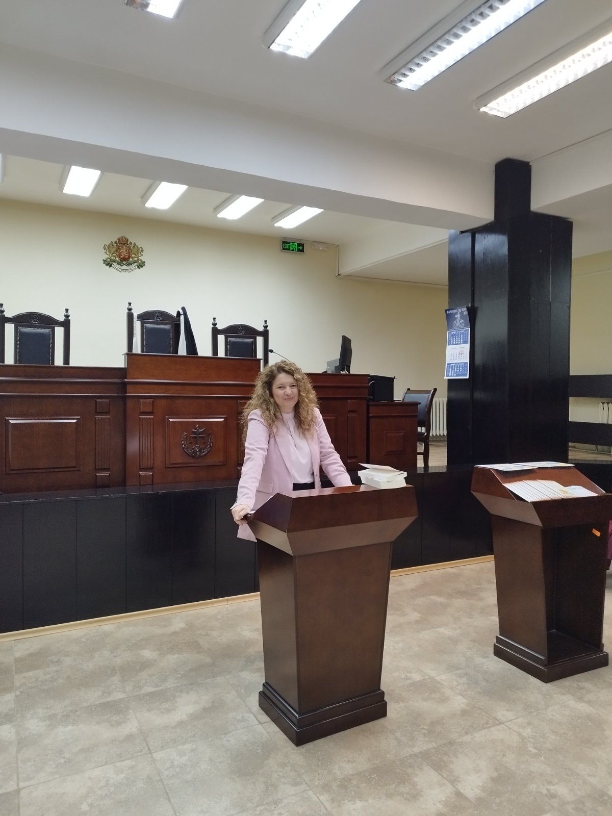 Специалният гост на инициативата - прокурор Райна Петрова, приветства участниците с думите: „Добре дошли в сградата на съда – мястото, където се защитава законът и се търси справедливост. Днес ще се запознаете с работата на хората, които всеки ден се грижат за това – съдиите, прокурорите и следователите. Ще научите как протича съдебният процес, какви права имате като граждани и какви са вашите отговорности пред закона. Ще говорим и за най-честите престъпления, извършвани от млади хора, и за последиците от тях. Нашата цел е не просто да ви покажем как работи съдът, а да ви помогнем да осъзнаете колко е важно да спазваме правилата и да правим отговорни избори в живота.“