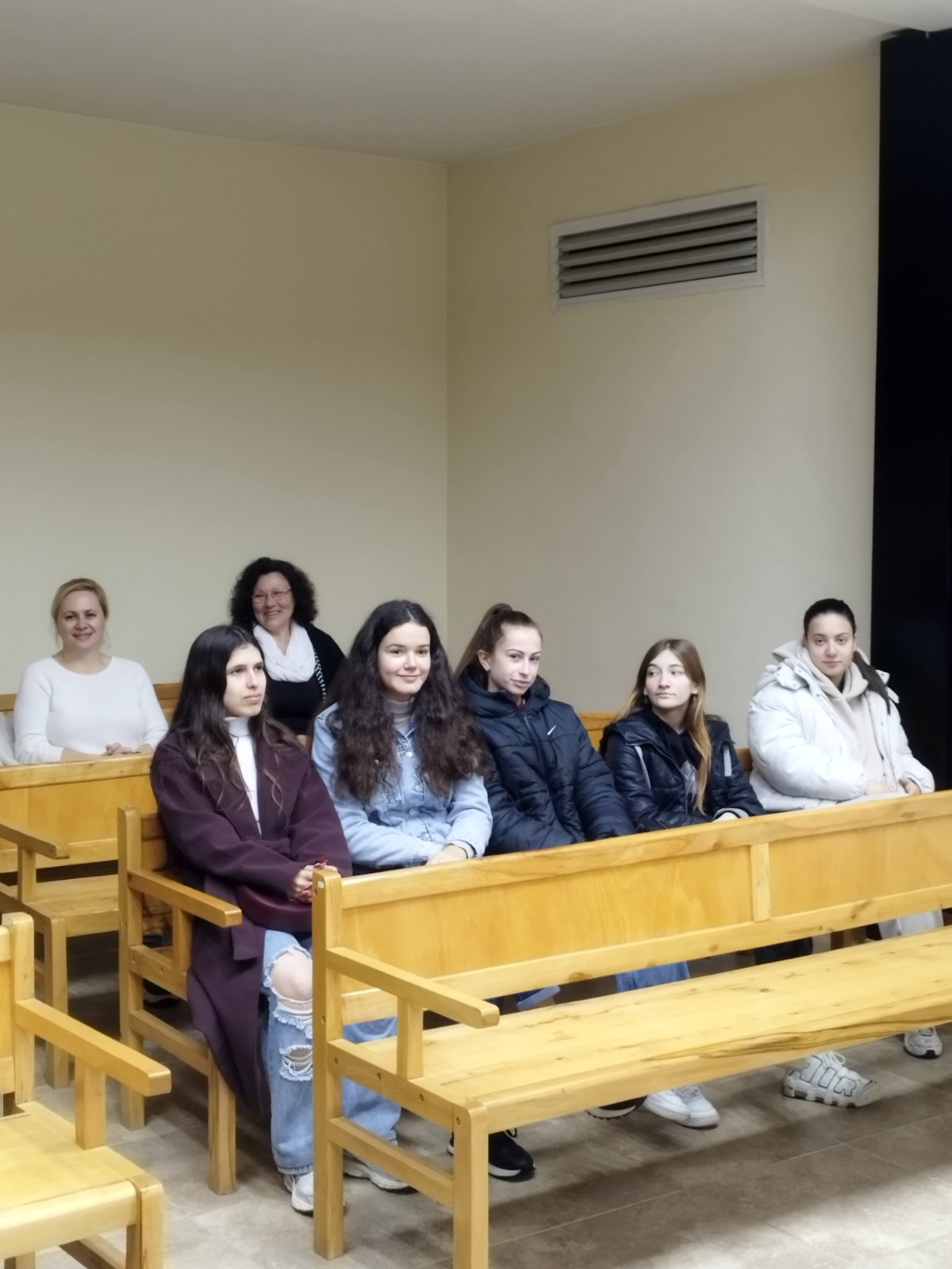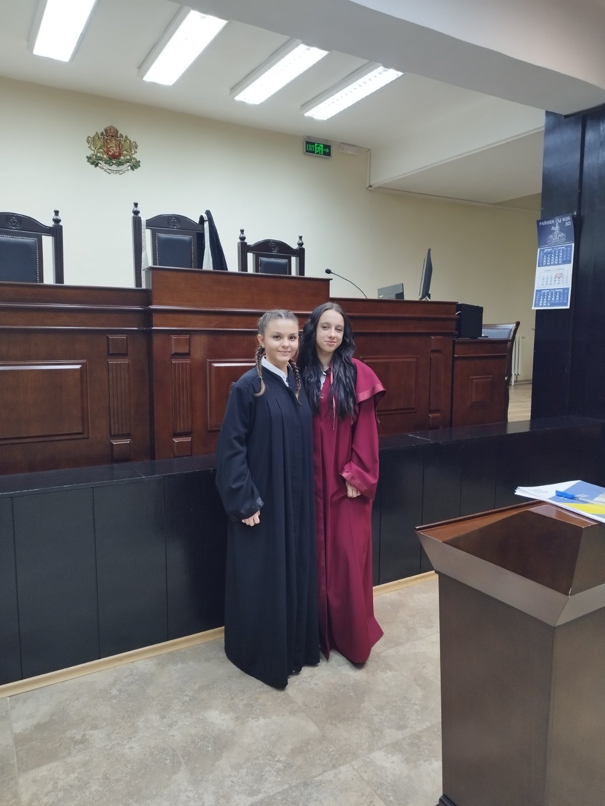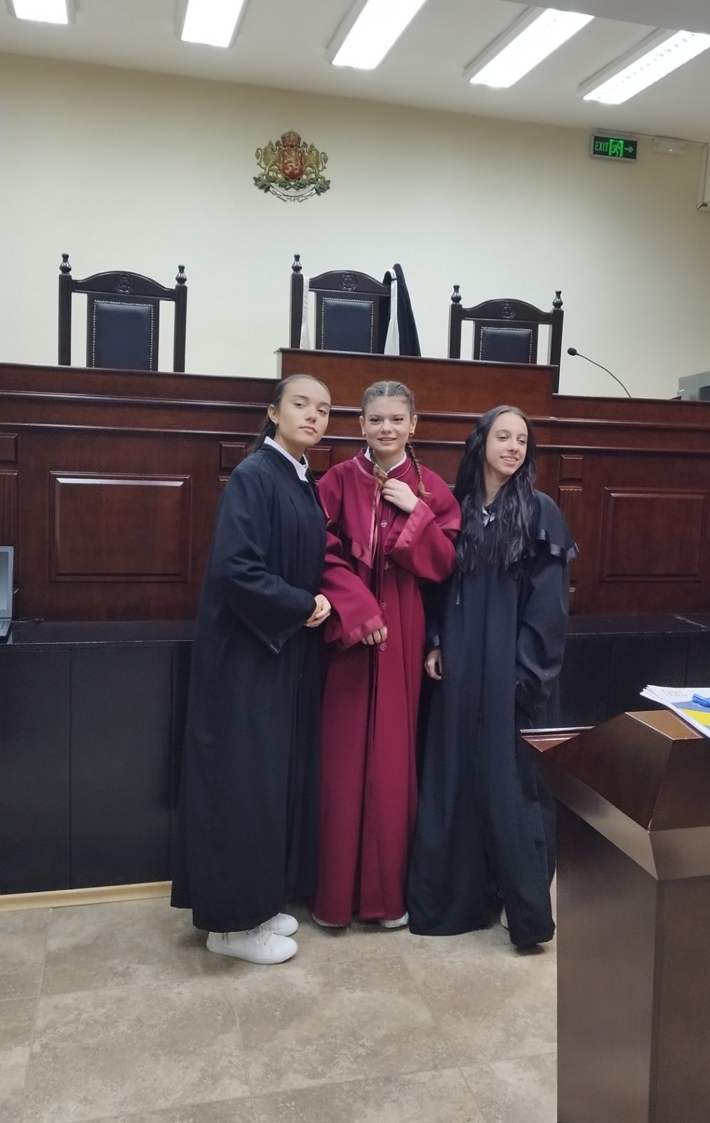 Учениците разгледаха съдебна зала, запознаха се с работата на съдията, прокурора и съдебния секретар, адвоката и т.н.